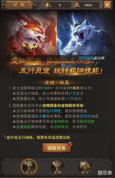 在《斩月屠龙》全新版本玩法中,玩家任意角色达到指定条件,即可进入涅槃试炼,通过试炼后,可享受五行炼体带来的大量战力加成;同时,成功涅槃后还将开启宠物图鉴和宠物牵绊系统。玩家经过激活不同的宠物图鉴,可学习不同的牵绊技能,助你纵横大陆。
