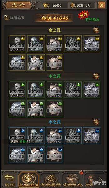 3. 宠物图鉴可消耗材料进行升星,满星后可进行升阶, 图鉴升阶更有百分比的属性加成;激活多个图鉴可获得套装效果。