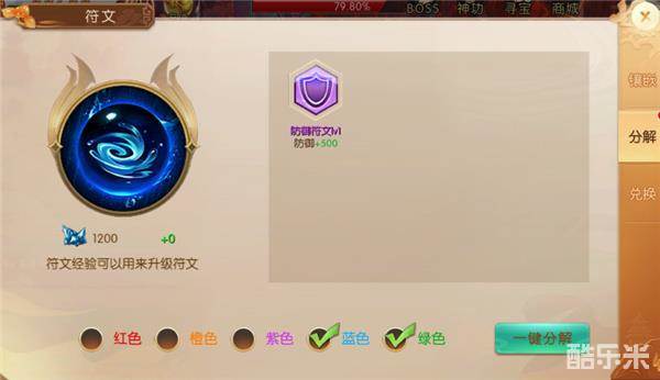 每次在符文寻宝进行寻宝之后都会获得一定数量的符文碎片,符文碎片攒到一定的数量,可以兑换自己想要的符文。