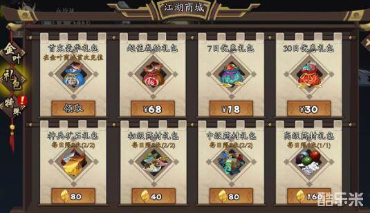 这大概是平民玩家最关心的问题了,最初通关送的金叶子首先要留下来买少林英雄令,大部分玩家已经心照不宣了,至于为什么买少林英雄令而不是其他这会在之后细讲。买完英雄令后金叶子的主要用途(仅仅针对平民)在于买药材礼包(看起来紫色最值,但推荐买蓝色),和抽卡。