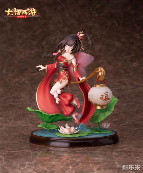 这款夜溪灵手办在2018年首次登场,亮相之后便惊艳众多大话玩家,大家纷纷对它精致的细节刻画、细腻的人物打造心动不已。只见夜溪灵手提花灯美目轻闭,纤纤玉足轻点碧玉荷花,碧波轻荡红袖添香,温婉纯真的气质显露无遗。无论是俏皮可爱的短裙、红色绣鞋上的金边勾勒,还是头上精美的莲花发饰都进行了完美还原。夜溪灵脚下莲叶翠绿、粉色的莲花花瓣层层晕染,黄色的花蕊生命力十足,踏着的水波甚至有精美的浪花雕刻。
