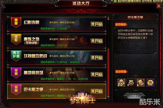 单纯的竞技战斗不能满足你调戏对手的欲望?单纯的刷怪比拼不能彰显你的战斗能力?塔人《奇迹重生:梦幻骑士》巴卡斯之争为你开启一场全能战争,在这里拥有一切战斗类型,满足你的所有战斗欲望!迎战巴卡斯之争,守护你的女神吧!