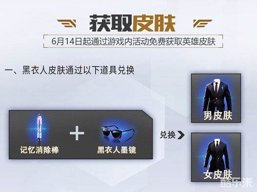 通过活动获取的“记忆消除棒”或“黑衣人墨镜”道具,可根据兑换规则兑换“黑衣人鲍里斯/黑衣人谭雅“皮肤等其他道具。