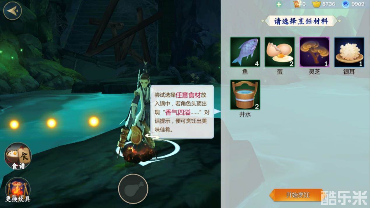 在《剑网3:指尖江湖》里,我们可以根据个人喜好,自由选取食材搭配比例,并借助煮锅、蒸锅、炖锅和油锅等烹饪道具,通过不同的烹饪手段,制作出落雁雪酿鱼、光明虾炙、难得逍遥饼以及八大菜系中的各类名菜。