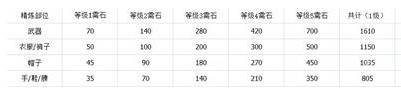 根据各个装备部位需求,给大家总结了一下各个部位最省钱的精炼公式。