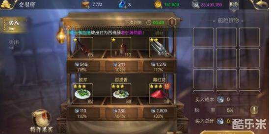 2、其次,就是各位船长在出售流行商品的时候会随机获得《特许采购书》。跑流行为了什么,利润固然是有一定关系,但是绝大多数的时候跑流行是就是为了赚取流行所带来的《特许采购书》。