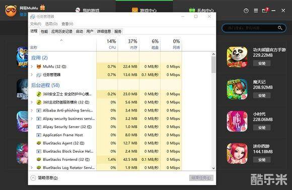 启动挺快的,占的内存也小了很多,对比之前那个模拟器老是卡得电脑不能动,这个估计一般电脑都可以运行