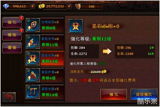 2,每次强化只消耗金币,玩家再也不用担心为什么提升的材料又不够了