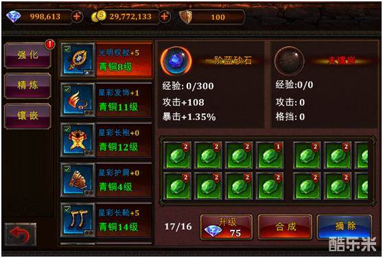 3,绿色装备最多镶嵌1颗宝石,从蓝色品质开始最多镶嵌2颗宝石,