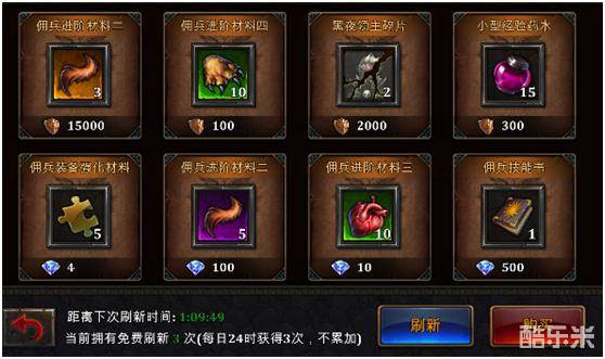 那佣兵所需要的材料还可以在佣兵商店购买。点击佣兵界面右上角的“佣兵商店”,而且每天有三次免费刷新的机会!