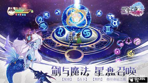 游戏设定了十二星座创意玩法,每个星座每天占卜的运气都不一样,实力位,金钱位和宝物位都有不同的运势;当星盘获得足够的能量时,服务器就会升级进入全新次元,开启全新玩法;充满迷雾的次元空间,也是充满宝物的地方。争夺boss,抢夺奖励,不断挑战自己的极限。
