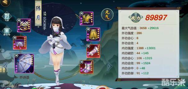 那么像我现在这套配装就是较为平民的,而且其实最开始我对陈月的配装也是一头雾水,后面经大佬提点后,我才逐渐更新我的配装到现在这样,大家可以看到我的双会是很高的,甚至虽然我只有不到9w的装分,但是却比榜上很多装分比我高的陈月的双会还要高,奶妈是很吃双会的,这点相信大家有共识。但我前面讲到我的配装是有瑕疵的,就是在鞋子上,我的鞋子选择了牌子,而牌子的属性是内强破防,这就很尴尬,破防属性对于奶妈来说基本是没有作用的,不过指尖来说,多多少少都赋予了奶妈一些输出能力,所以才不至于让这145点的破防绿字属性看着这么别扭。