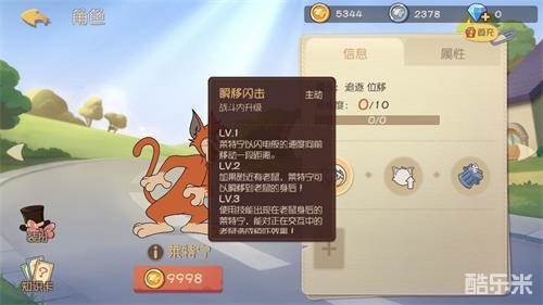 这是橘猫一个非常强大的追击技能,一级是往一个方向瞬移一小段距离,有技能前摇,二级可以瞬移到老鼠背后,无视地形限制,瞬移距离也增加很多,三级更加变态,如果用技能的时候对方正在交互中就可以直接进入惊吓状态,这个时候一下普攻可以直接拿下!要注意的是,这个时候的老鼠虽然能够被抓取也能绑火箭但实际上是属于满血状态的,所以守尸的时候要小心了,卡时间打断解救和垃圾桶守尸都不能瞬秒的!用老鼠夹或者道具投掷加普攻可以解决这个问题!