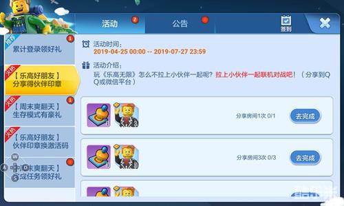 乐高无限怎么分享 分享任务怎么完成