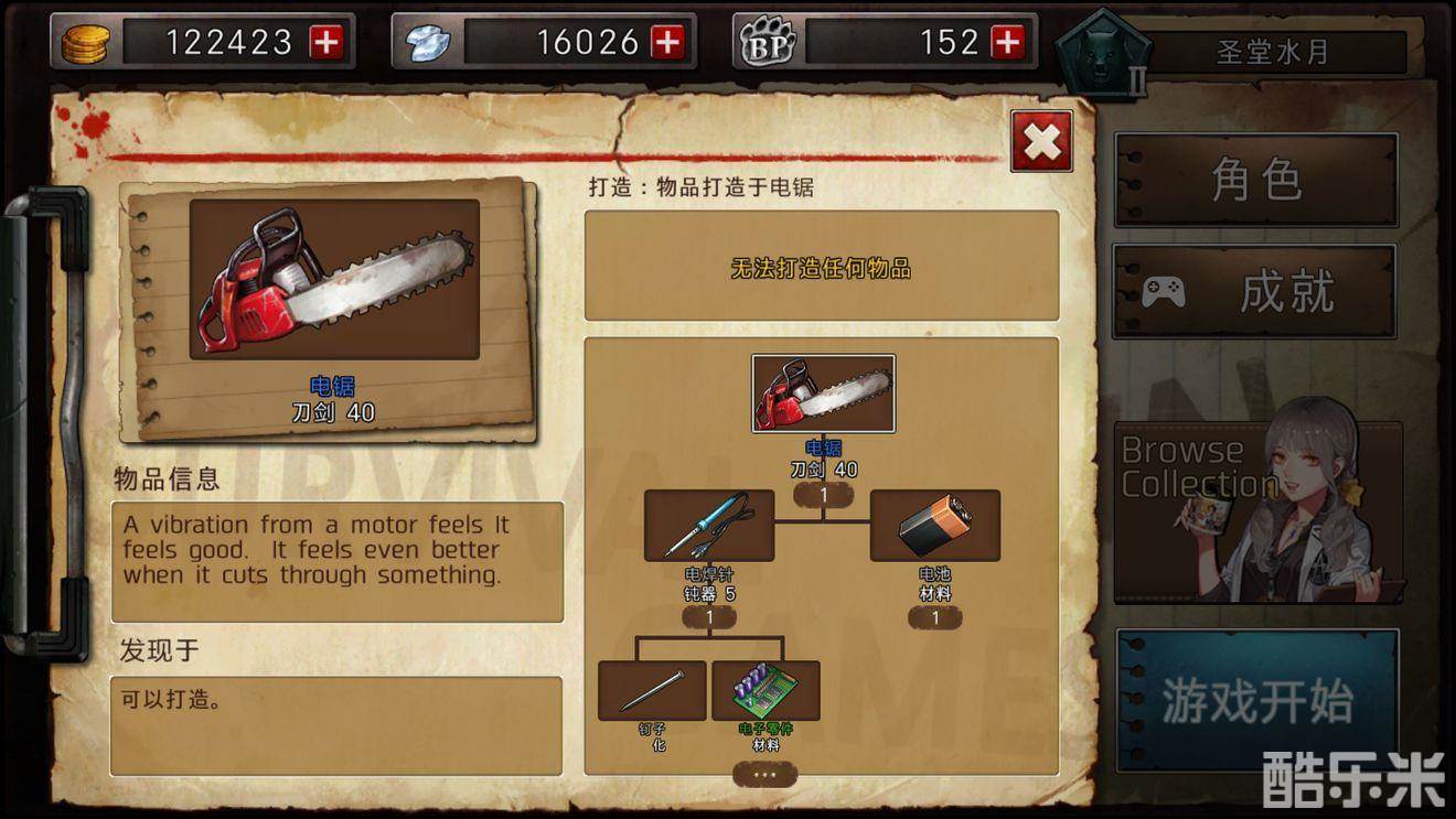 6,中期记得再做一把刀备用,电锯的武器损坏率绝对是最高的。