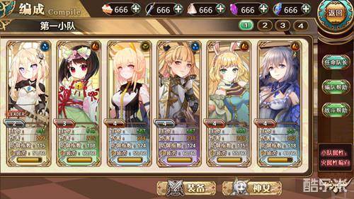 抽完卡,我们就可以去编队了,一个队的最高标准是6个人,如果资源有限,少于6个人也是可以的,不过人多力量大不是吗?人少的话,可能要重复打关卡了。配备了人手之后,记得要任命队长,队长同时也是首页面板娘,所以我是选了编队中自己最喜欢的角色。
