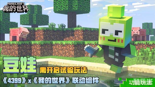 同期出现的另一人气选手,非《4399》×《我的世界》的联动组件《豆娃》莫属。在水边活动时,即有一定概率遇到可爱的豆娃。豆娃以保护冒险家为首要职责,但活泼的豆娃会不时外出玩耍,同时带来别致的小礼物。和豆娃一起游历《我的世界》,同样需要通过点击【设置】-【管理世界选项】-【开启实验玩法】打开实验玩法。
