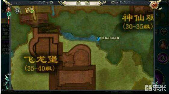 地图中飞龙堡的东北方有一条西北―东南走向的湖水。因为无法自动寻路,所以记住地图中我的位置,手动自己找到这片湖水。