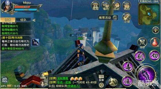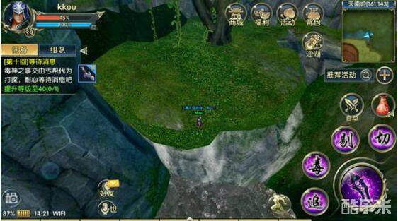 因为有瀑布的存在,所以我们需要逆流而上。使用轻功跳到瀑布上面的台子(161.134)上,便会完成。