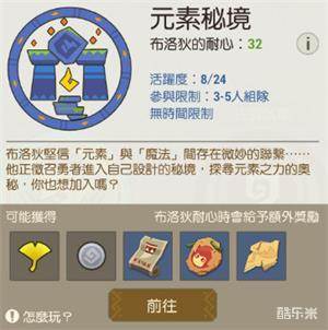 一定要跟大家推荐一下元素秘境这个东西,这个副本在每日的任务裡面,图裡面看见的「布洛迪的耐心」每天都会增长,透过这个耐心你就拥有通关之后取得奖励次数,耐心越多,能打的关卡就越多。