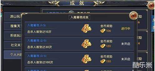 入魔屠戮属于成就的个人兴趣部分,具体要求是要玩家达到一定的击杀人数即可激活成就,最终获得“嗜血狂魔”称号。