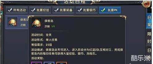 侠客岛也是一个轻松混击杀数的敌方,此活动全天可进入,进入后会分为红蓝两队,双方可以在地图中间展开混战,每参加一次随便拿下十个人头,同时还可以获得大量经验、银币和洗炼石。