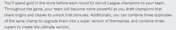 这里的origins和classes就相当于是英雄的身世背景(或者说种族)与职阶,这与自走棋规则几乎一致,不过在具体的设计细节上必然是依托LOL的世界观设定的,因此肯定会呈现出不同。