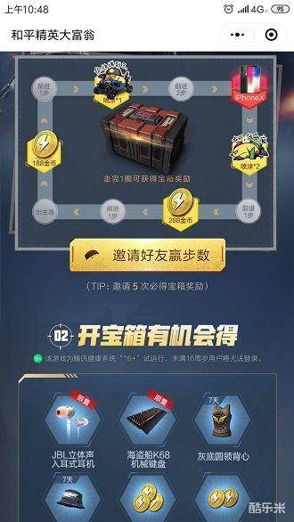 大富翁活动就是在游戏中开启的,前进对应的步数,走到哪里就领取对应的奖励。用邀请好友获得步数,10步是可以获得一个宝箱奖励的。可以去参与,这个玩法就和大富翁一样的。