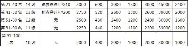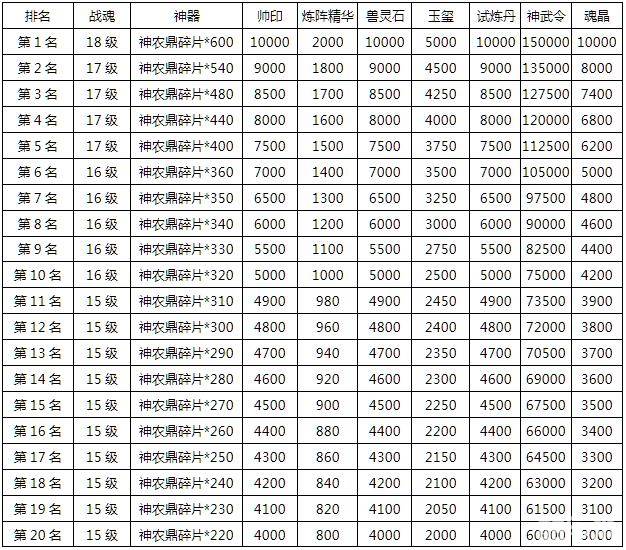 7、活动持续5天,结束后1个工作日内(即6月19日18:00前)在布告里公布本次跨服消费排行榜最后获奖名单结果,前100名的玩家将会获得各种丰厚奖励;