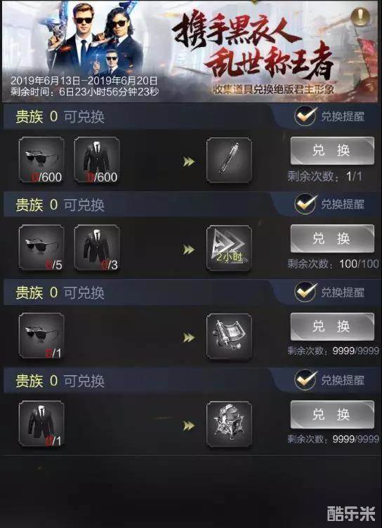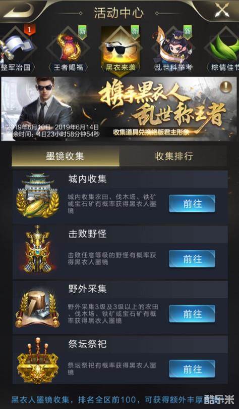 墨镜无疑是《黑衣人》系列电影的标志,这一次墨镜也成为了游戏中的关键因素。6月10日至6月14日,游戏内开启“黑衣来袭”活动,玩家可以通过完成一系列任务收集道具“黑衣人墨镜”,通过排行奖励还可以获得高级招募券、科技加速及资源自选宝箱,更有机会获得高级洗练石。活动结束时排名全区前100位的玩家还可获得额外神秘奖励!