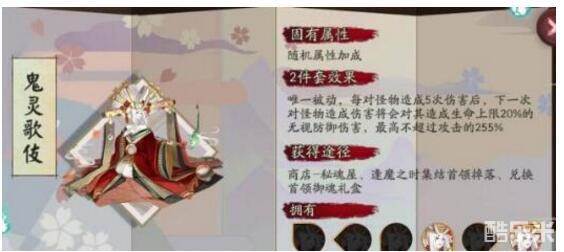 本周阴阳师体验服更新之后,不仅让之前出现过的逢魔首领鬼灵歌伎,成为固定boss之一,还同步上线了新的逢魔御魂——鬼灵歌伎。御魂效果是:每对怪物造成5次伤害后,下一次对怪物造成伤害将会对其造成生命上限20%的无视防御伤害,最高不超过攻击的255%。