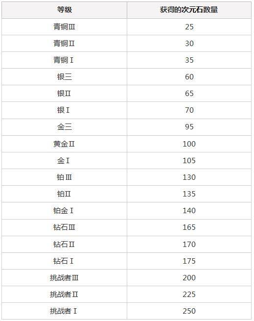 联赛期间每周日早上4点重置,你可以按照排名每次获得一定数量的次元石。每次上升到某个段位时,次元石的数量也会增加。