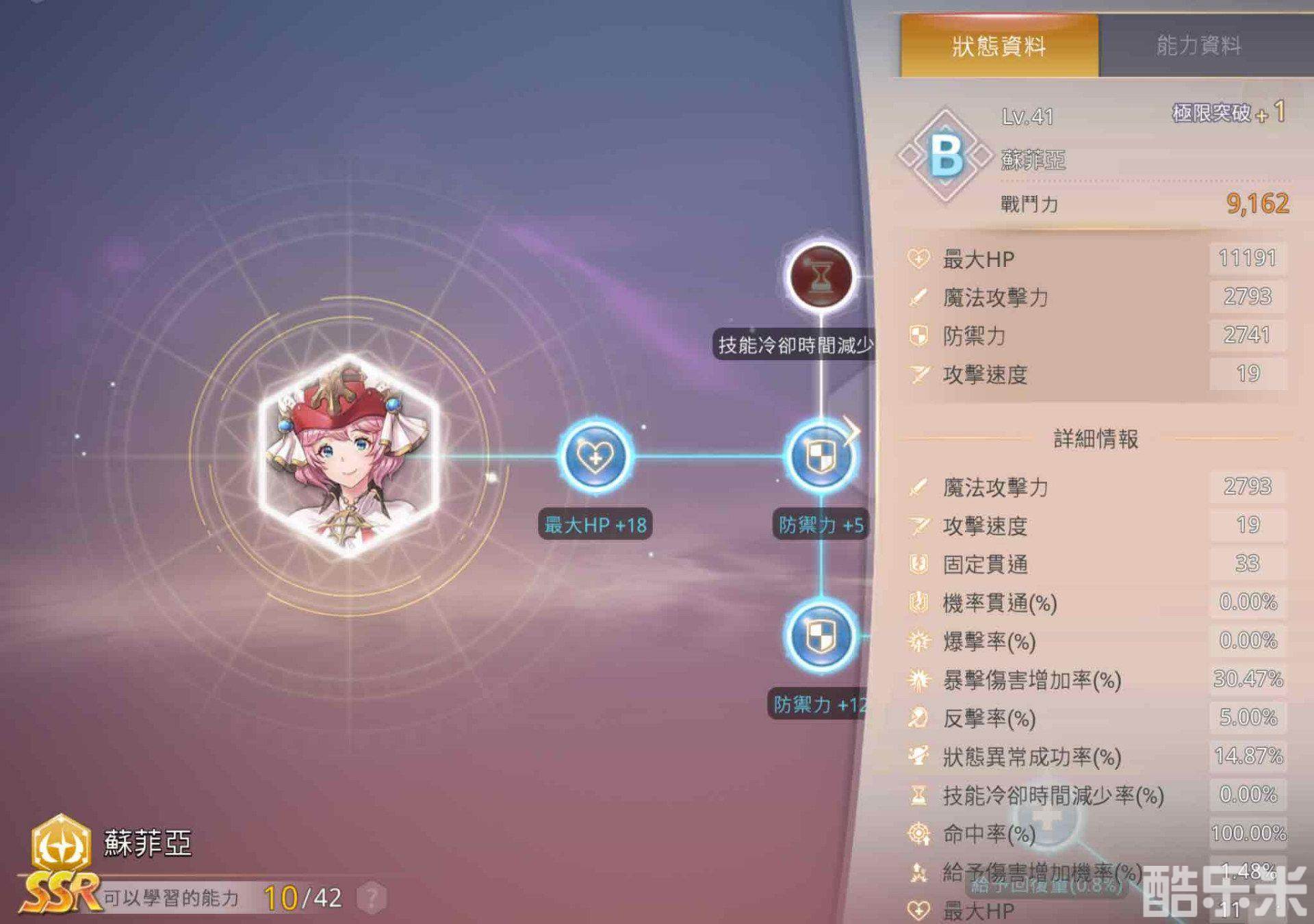 也可以先专攻一条,因为最终都会是42个能力值都可以全部学完只是差在你过关卡任务的时候,每个英雄角色对应能力值的前后差异而已从这边你可以看到每个英雄本身的基础能力以及详细情报