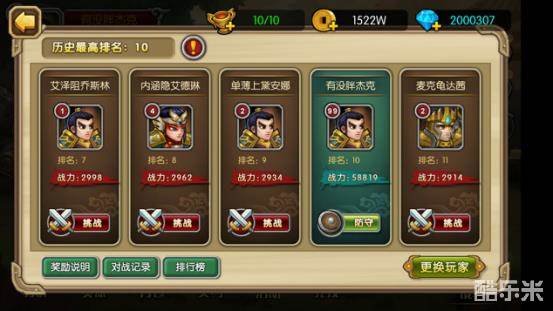 挑战排名高的玩家,获得胜利,取代该玩家排名。