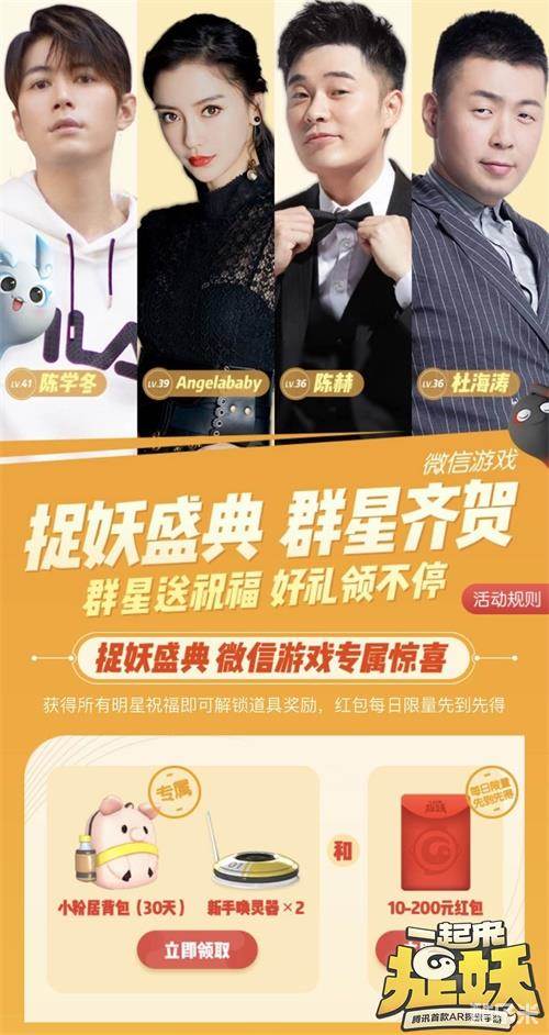 6月16日,腾讯首款AR探索手游《一起来捉妖》正式开启“明星御灵师,拒宅大挑战”活动,与陈赫、Angelababy、陈学冬、杜海涛四大明星御灵师一起抱团捉妖,赢取豪华奖励。不仅如此,游戏内还将举办“用拒宅行动为明星御灵师充能”活动,与千万御灵师一起走出家门,为爱豆打Call。