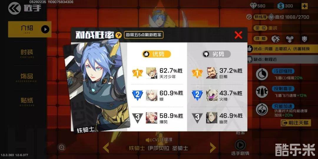 从对战胜率来看,铁骑士还是比较怕近战有优势的选手,像巨熊这种近身之后喷就完事了的选手,铁骑士是刚不过的。所以,多利用小招飞盾打伤害,配合队友,才是铁骑士是要做的事。