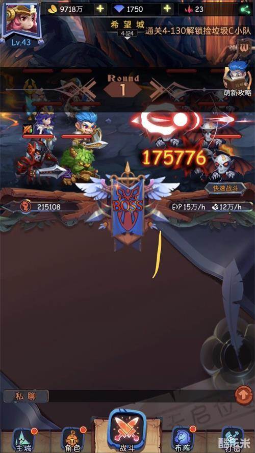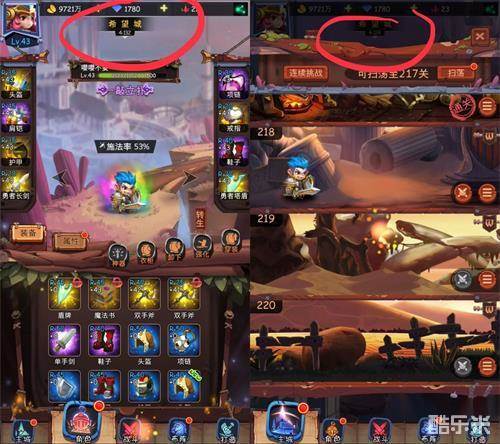 最后结果大概就是在角色界面显示的关卡=最终推关成果,城堡和战斗界面显示的关卡=为加载出的关卡,这俩可以差百来关(只要我点的够快,战斗画面就追不上我),注意钻石金币等级数目是一致的