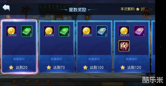 奖励规则简单易懂,累计到对应星星数量,领取对应奖励。因为奖励中的宝物经验书在初期的需求量非常大,所以主公们要根据对手的战力,尽量选择倍数较高的对手,这样才可以获得更多的星星。