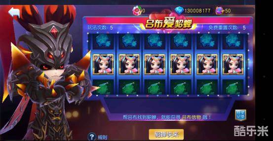 这个活动和水果游戏机是一个道理,就是看运气转转盘啦,转到貂蝉的图标才算是成功,每天系统都会赠送玩家5次参与机会和重置次数,可以在原有的基础上再次进行转动,这样就会有很大概率转出貂蝉图标,当出现四个图标的时候我们就可以获得吕布信物宝箱,有很大概率开出吕布的信物哦。