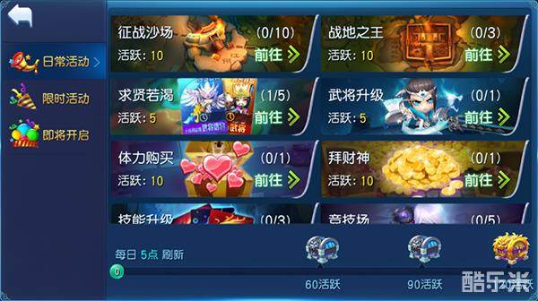 首先,各位主公按照各类日常活动的引导进行游戏时会获得额外的经验奖励;其次是当主公体力不足无法进入下一关卡的时候,可以通过点击右上角来补充体力,更多的体力值也会帮助你加快升级的速度哦。