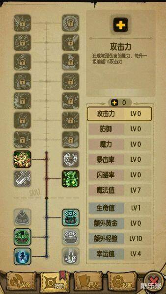 首先一定要点满额外经验,因为点满下面的技能要十几级,不加经验个人感觉很慢,而且刷起来很不爽。之后由于摸箱流经常要从一层攒药水起来,一套金币装,一套经验装是必须的,个人摸到60层还带了一套幸运装,遇到金箱子换上幸运装开摸,基本回城也能混几件高级金装。