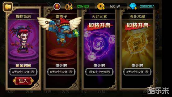 寻仙活动是玩家获得高级英雄的途径之一,活动类型有四种,分别是蜘蛛妖后、雷震子、天地元素、强化水晶,目前只开放了蜘蛛妖后和雷震子两种类型,其他两种会在后续逐步开放。