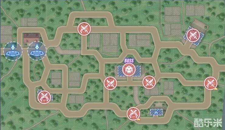 首先来看地图,可以发现整张图,相比其他副本来说一星敌人非常少,道中压力很低,因此我们完全可以用攻坚队将大部分道中敌人清理掉,Boss队承担剩下的道中敌人后带着近乎满额的状态去面对Boss。