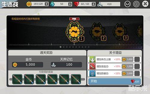 ⑥ 要刷进化石的不建议去刷城市保卫战,毕竟爆率实在感人。可以去刷你副本的第三关或者第九关的困难,都有爆非凡进化石,第三关金币多,第九关经验多,当然你能打到第几章就刷第几章的