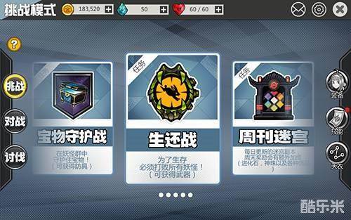 ② 这时候就可以去刷武器了。挑战生还战,1-5关需要杀光全部的怪,可以选择等怪聚集起来一起打扔个残影基本死一片了,个人建议是跑到远程怪那面向擂台打过去,毕竟近战怪会追你,有变身就变身。6-10只需要生存,就是不死就好了,绕大圈跑不用打怪,正常一局结束都是无伤的。