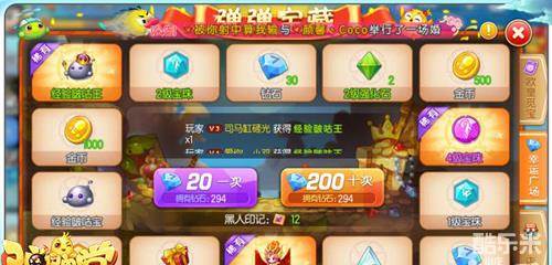 玩家可以在此通过消耗宝藏钥匙或钻石的方式来抽取奖励。除了将稀有的史诗恐龙时装盒替换为经验啵咕王之外,幸运广场的奖品水准基本与原来的弹弹宝藏保持不变,玩家依旧可以获得高等级宝珠甚至橙色宠物朱雀。