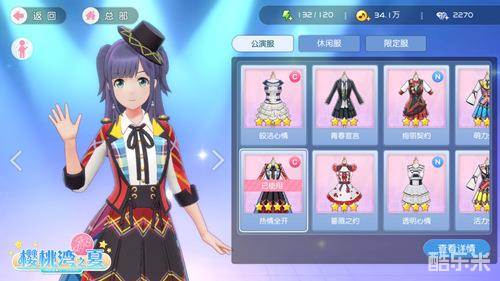 在樱桃湾,你要扮演经纪人的角色,为偶像安排好每天的工作,再不同的场合和事件中搭配不同的服装也至关重要。樱桃湾拥有最全的偶像服装库,为偶像们量身定制了丰富的公演服、休闲服及限定服。皓洁心情、青春宣言、绚丽契约、热情全开等服装任你选择。