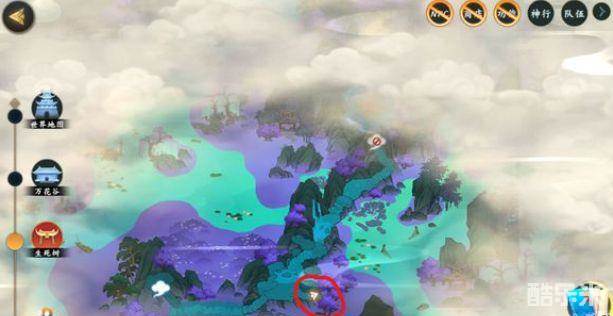 玩家在万花谷生死树地图的如下图所示的位置附近,开启心眼,即可解除到进入清冥谷的入口。