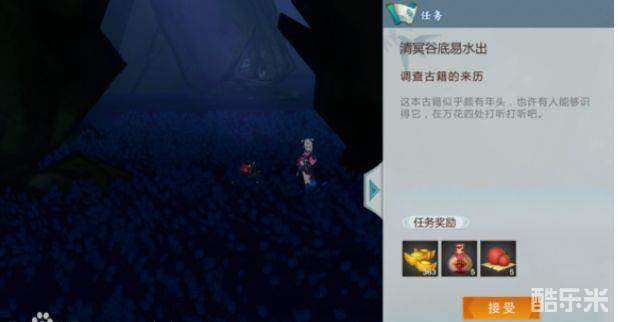 走入其中后能够在里面发现一份卷轴,拾起就能够开启清冥谷底易水出的任务。