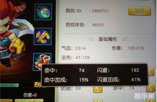 当我们打上一个5级神秘石后,闪避属性跟闪避加成都发生了变化